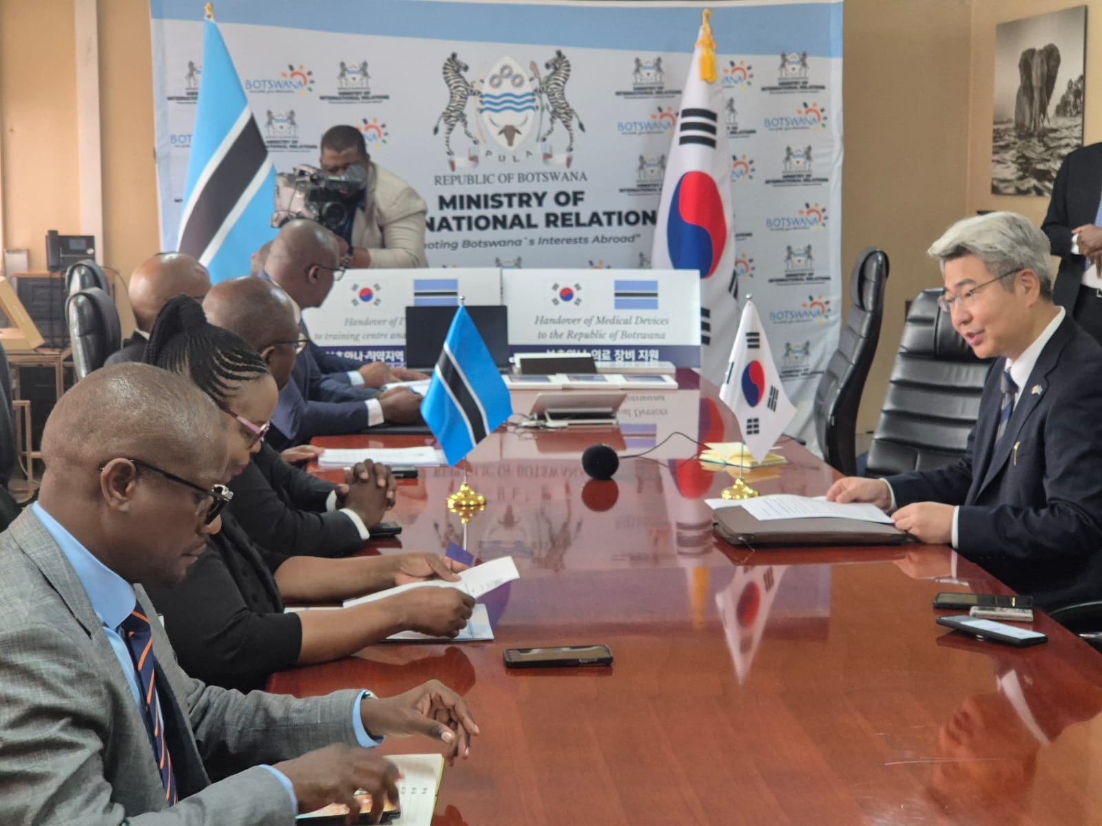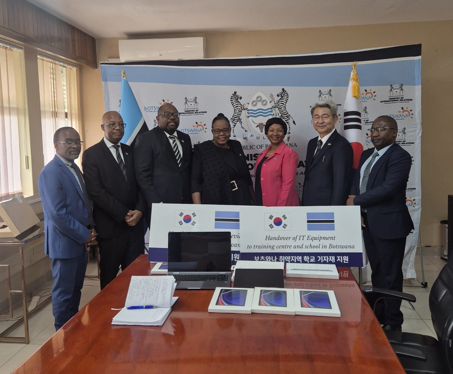 양동한 대사는 2026.3.4.(화) 보츠와나 국제관계부 장관이 주최하고, 기초교육부 장관 및 보건부·고등교육부 고위관계자들이 참석한 2025년 소규모 무상원조(ODA) 사업 전달식에 참석하여, 의료 장비(이동형 초음파 13대, 모바일 엑스레이 3대)와 교육용 디지털 기기(태블릿 200대, 노트북 컴퓨터 33대)를 전달하였습니다.
